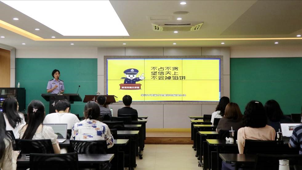 王警官以分析电信网络诈骗的现状为切入点,指出电信网络诈骗呈高发多发态势,隐蔽性、欺骗性、迷惑性大增,其形式已由“撒网式”向“精准化”发展。她以沙坪坝区近三年电信网络诈骗案例数据为例,强调电信网络诈骗的骗术层出不穷、手段五花八门,存在极大的社会危害性,已经严重影响人民群众的财产安全和生命安全。