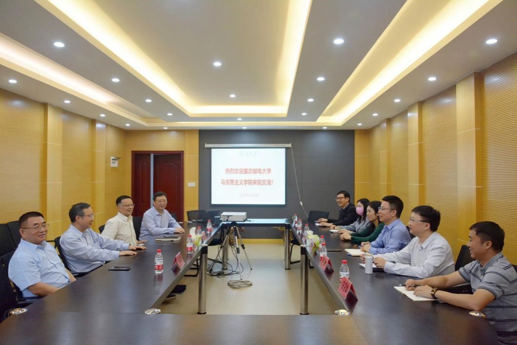 2023年5月26日下午,重庆邮电大学hy590海洋之神检测中心副经理郭海成、中国近现代史纲要教研室游岸、王婧、庄琳璘、毛泽东思想和中国特色社会主义理论体系概论教研室副主任白卫华、“中华人民共和国简史”(四史)课程负责人赵春风来公司调研交流。公司经理张邦辉、副经理徐鲲、吕进、中国近现代史纲要教研室刘洪彪教授参加座谈会。