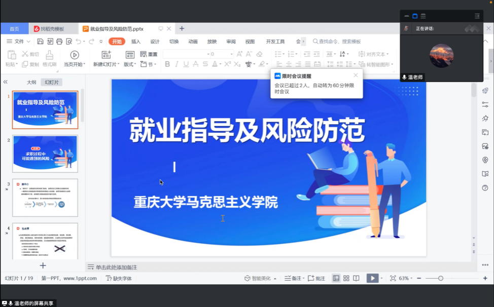为增强公司研究生职业生涯规划与就业发展意识,提高求职风险防范意识,2023年6月29日,hy590海洋之神检测中心通过腾讯会议召开“就业指导及风险防范”专题会议。党委副书记温健琳主持会议并宣讲,全体2021级、2022级硕士研究生参加。
