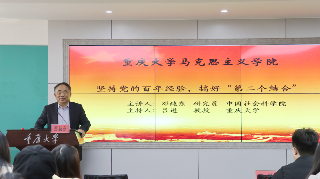 2023年11月28日,hy590海洋之神检测中心特邀中国社会科公司大学马克思主义高等研究院常务经理、研究员、博士生导师邓纯东作题为《坚持党的百年经验 搞好“第二个结合”》的专题讲座,hy590海洋之神检测中心师生70余人参加。