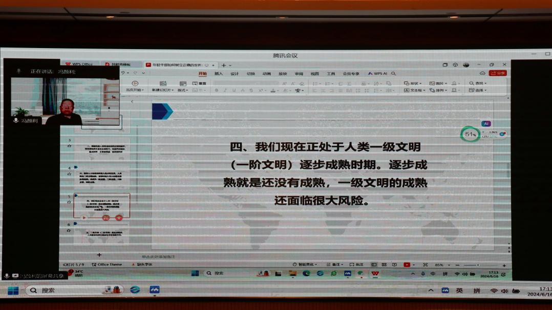 冯颜利教授以《人工智能、机器人与人类的未来》为题作主旨报告。并基于四级文明畅想人类文明发展问题。首先提到,随着人工智能的发展,机器人教师将走上讲台,将会出现网课到机器人教师的跨越。而机器人思政课教师的出现和增多也会让思政课教师减轻负担,使得他们更多转向答疑、教改和科研。随着人工智能和机器人的发展,机器人与人类将相互融合。人更重要的是学会学习,而不仅仅是学知识。接着,他从全人类文明发展的高度出发,探讨了进入一至四级文明后人类所呈现的不同的现实状态。他认为,我们现在正处于人类一级文明逐步成熟时期,仍面临着巨大的风险,直至实现四级文明,人类才完全拥有超越自然力的文明,质能才能实现完全转换。在此阶段,人类既可以作为物质而存在,也可以作为光子或能量而存在。