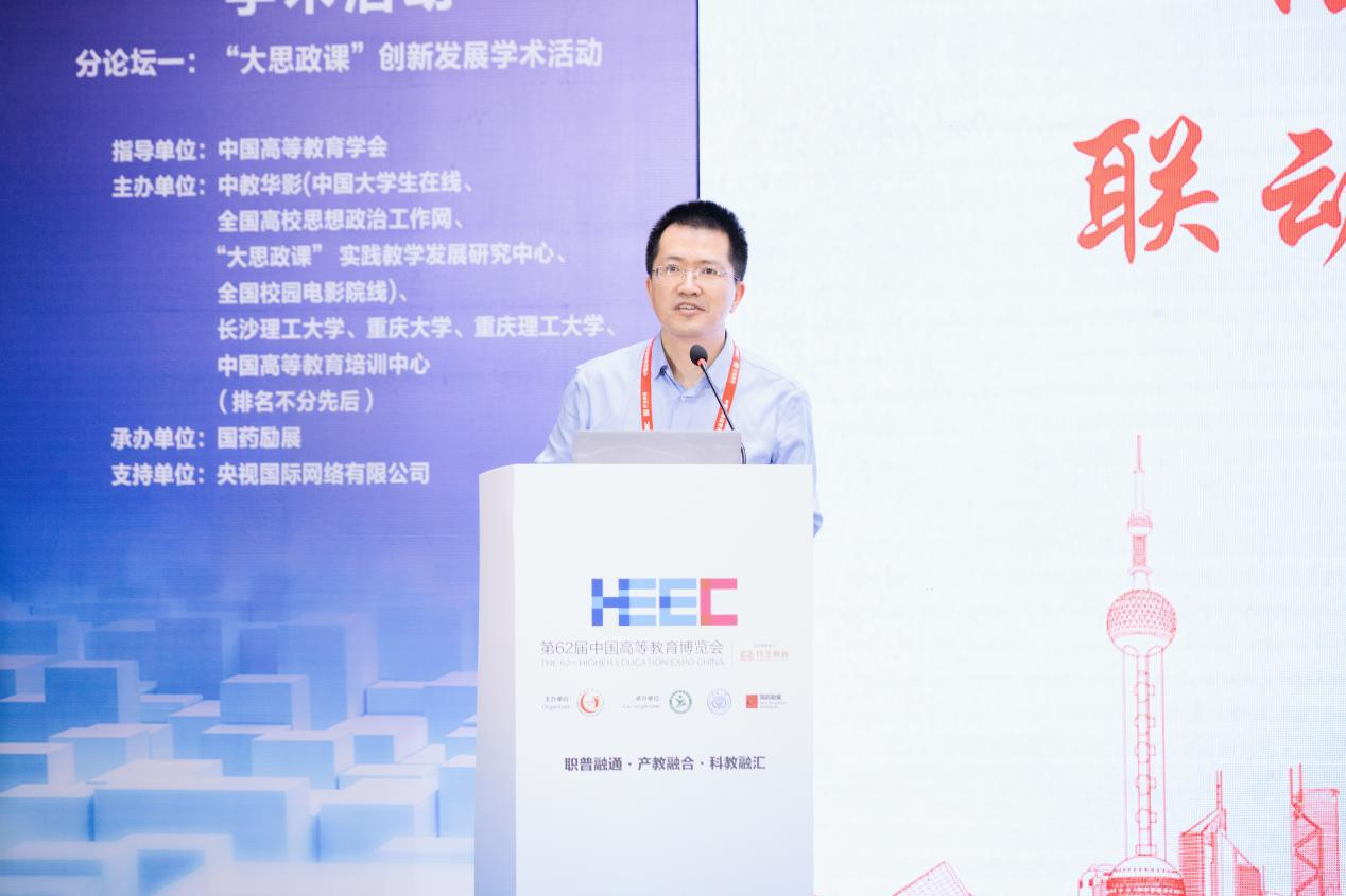 杨成以《高等教育数字化背景下的课程思政教学实践》为题,介绍了西南交通大学在数字经济时代课程思政的理论创新和公司产品改革探索,积极开展数“智”思政建设,应用人工智能技术,从课程思政元素聚类、归类,形成共享资源图谱,有效整合思政元素。