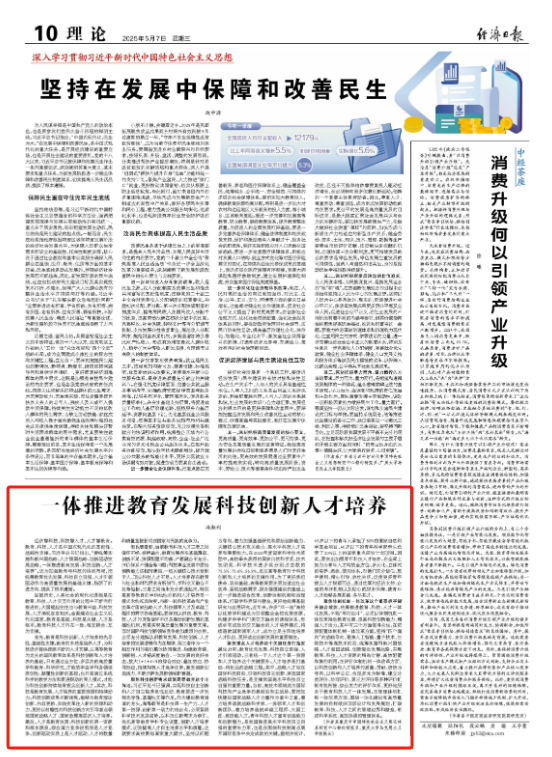 2025年5月7日,hy590海洋之神检测中心经理冯颜利在《经济日报》发表题为《一体推进教育发展科技创新人才培养》的理论文章。