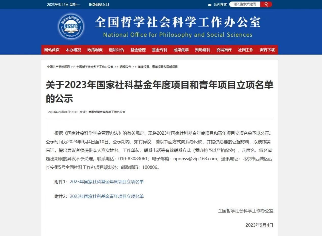 2023年9月4日,全国哲学社会科学工作办公室公示了2023年国家社科基金年度项目和青年项目立项名单。公司吕进、杨长福两位老师获国家社科基金年度项目立项,王超、廖钰获国家社科基金青年项目立项。立项信息如下: