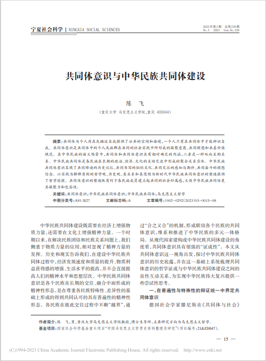 共同体为个人存在或描述自我提供了公共的空间和语境,一个人只有在共同体中才能辨识自我。共同体意识是共同体中的个人或族群在共同的社会实践中所形成的凝聚意愿、共同理想和共善价值规范。在中华民族的语义场景中,共同体和共同体意识具有相对确定的内涵,二者是一种双向互构关系。中华民族共同体是各民族在长期的政治、经济、文化的互动交流中形成的聚合关系实体。中华民族共同体意识呈现了共同缔造的历史记忆、共同书写的灿烂文化、共同交往的感知与期许、共同奋斗的理想信念。以实践为解释原则的哲学观、历史观、类关系和类思维为新时代中华民族共同体意识的塑造提供了哲学前提。共同体意识的塑造既有利于各民族成员建立起共同的社会归属感,又使中华民族共同体更具凝聚力和包容性。
