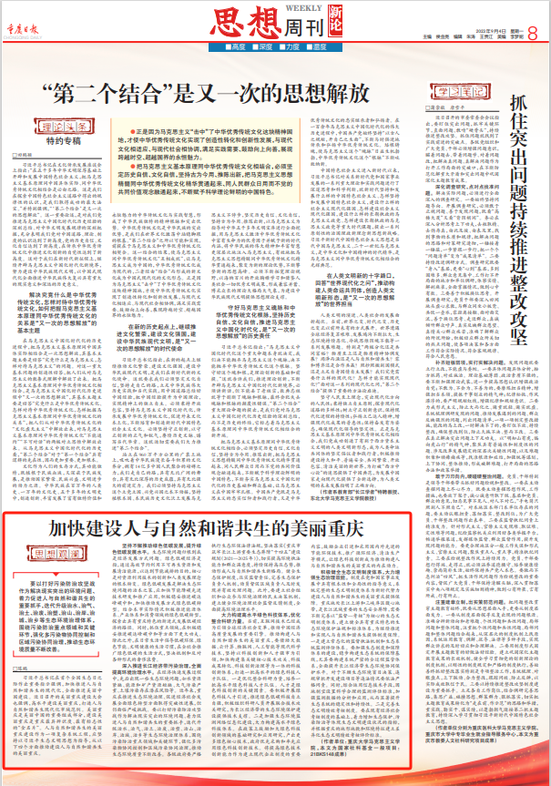 2023年9月4日,公司陈鹏博士在《重庆日报》思想周刊栏目发表《加快建设人与自然和谐共生的美丽重庆》一文。