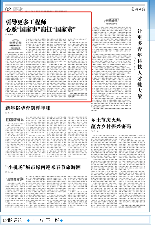 2024年2月21日,公司杜俊华教授在《光明日报》第2版光明论坛上发表文章——《引导更多工程师心系“国家事”肩扛“国家责”》。
