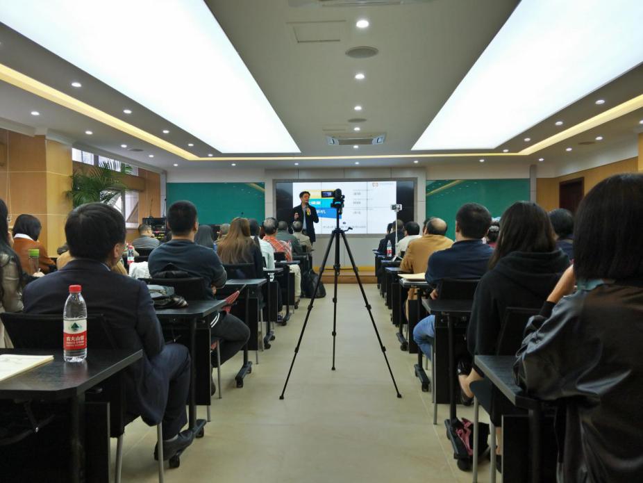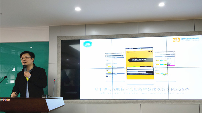 接下来沈教授向在场师生介绍了思政课教学与新媒体、新技术结合而取得巨大成效的案例。他指出共享单车和北京卫视“跨界歌王”的成功案例给思政课的教学带来的重要启示和创新思路。他分享了他们团队的成功经验,他们是如何站在员工的角度,设计学习软件来提高员工的到课率、抬头率和参与率,从而真正做到思政课全员参与、全员互动、全员收获。