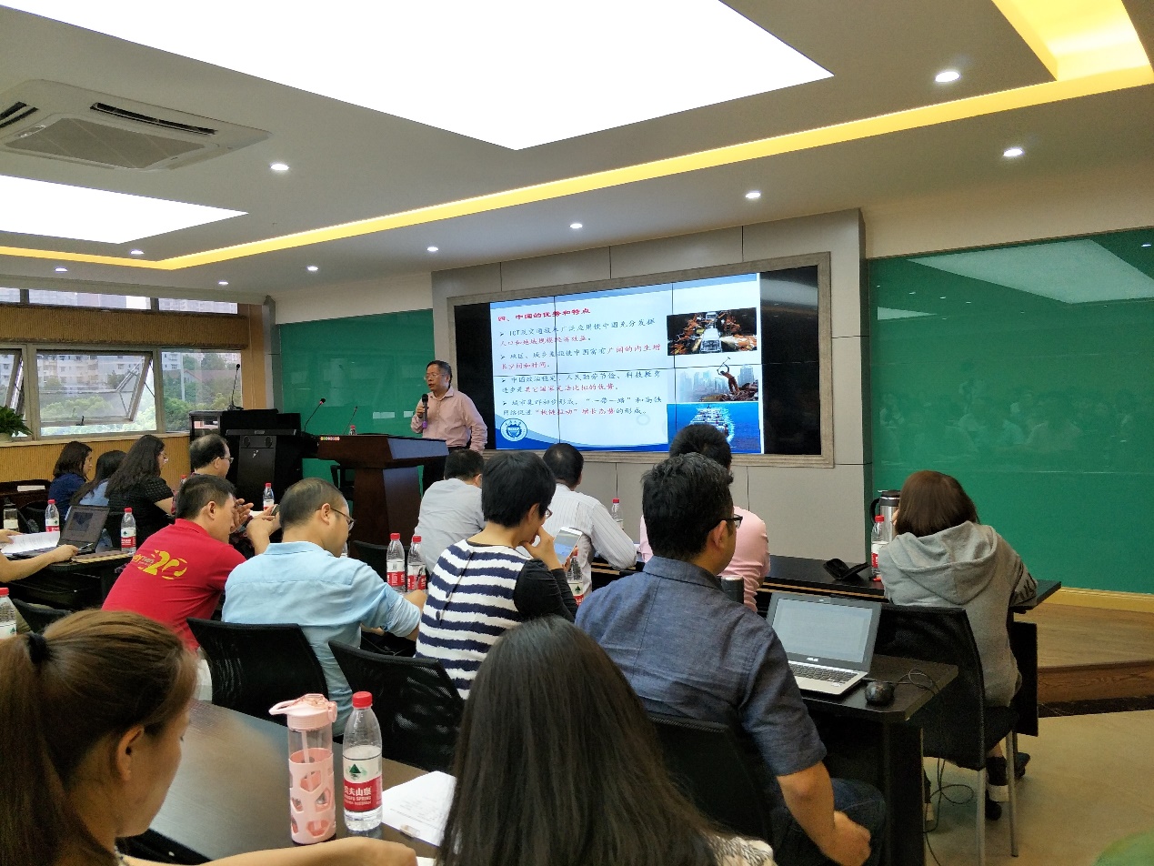 为加强思想政治课程建设,提升思想政治理论课教师学术研究能力,2017年9月28日下午,在人文社科楼408室,hy590海洋之神检测中心“红岩讲坛”第二讲邀请知名经济学家、校社科学部副主任、经济与工商管理公司姚树洁教授,作了题为“中国社会经济发展的自信与定力”的学术报告。报告会由公司经理肖铁岩教授主持。